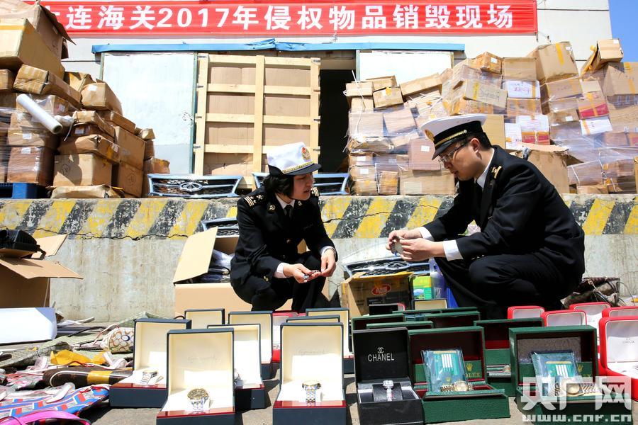 大連海關(guān)銷毀侵權(quán)貨物12萬(wàn)余件(央廣網(wǎng)發(fā)林戈攝) 央廣網(wǎng)大連4月28日消息(記者張四清 田彤 通訊員趙晨星)大連海關(guān)28日通報(bào)說(shuō),日前,這個(gè)海關(guān)集中銷毀了自2015年以來(lái)查獲的12萬(wàn)余件侵權(quán)貨物。 -