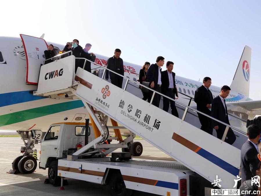 德令哈機(jī)場(chǎng)迎來(lái)首航乘客(央廣網(wǎng)記者 葛修遠(yuǎn) 攝)