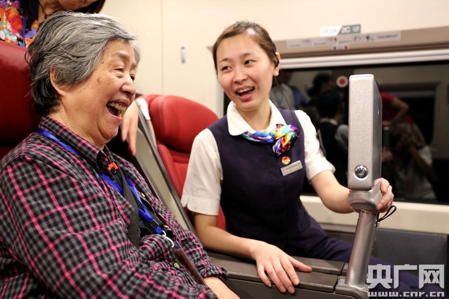 央廣網(wǎng)福州6月17日消息(記者葛朝興 通訊員雍萬。┖细8哞F進(jìn)入實(shí)圖試運(yùn)行期間,福州地區(qū)近70名老鐵路乘坐福州至武夷山東站G1280次列車首次體驗(yàn)合福高鐵新速度。