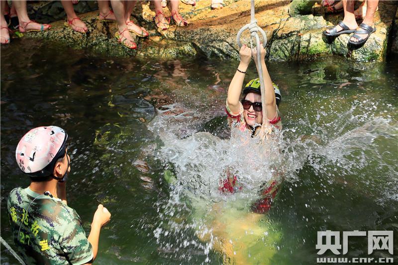 因?yàn)橛卸宋纭跋待埶钡牧?xí)俗,節(jié)日當(dāng)天,呀諾達(dá)景區(qū)的“踏瀑戲水”項(xiàng)目備受游客追捧。帶上頭盔穿上草鞋,爸爸帶著孩子勇闖各個(gè)戲水關(guān)卡,歡笑聲嬉戲聲不絕于耳,這種情景每天都在呀諾達(dá)的夢(mèng)幻谷上演著,端午節(jié)當(dāng)天就更為明顯了。