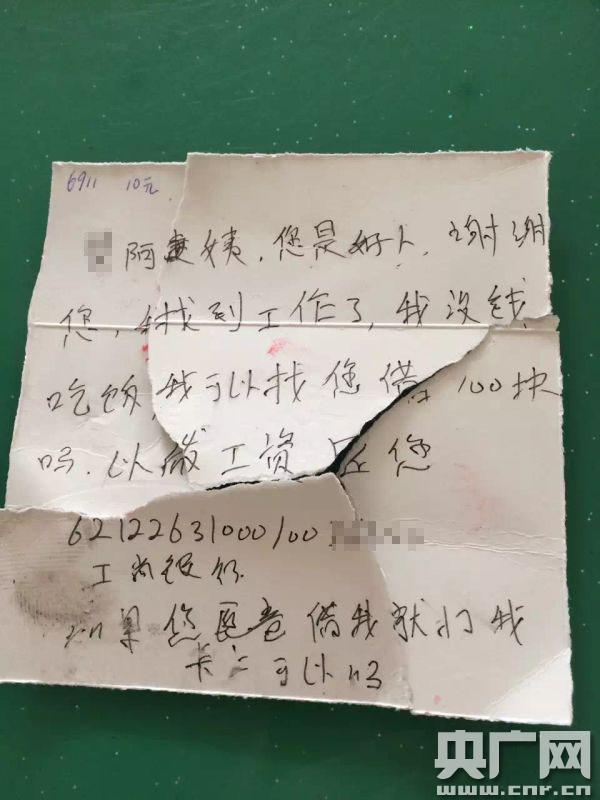竊賊7月8日盜竊后還讓失主匯錢的紙條