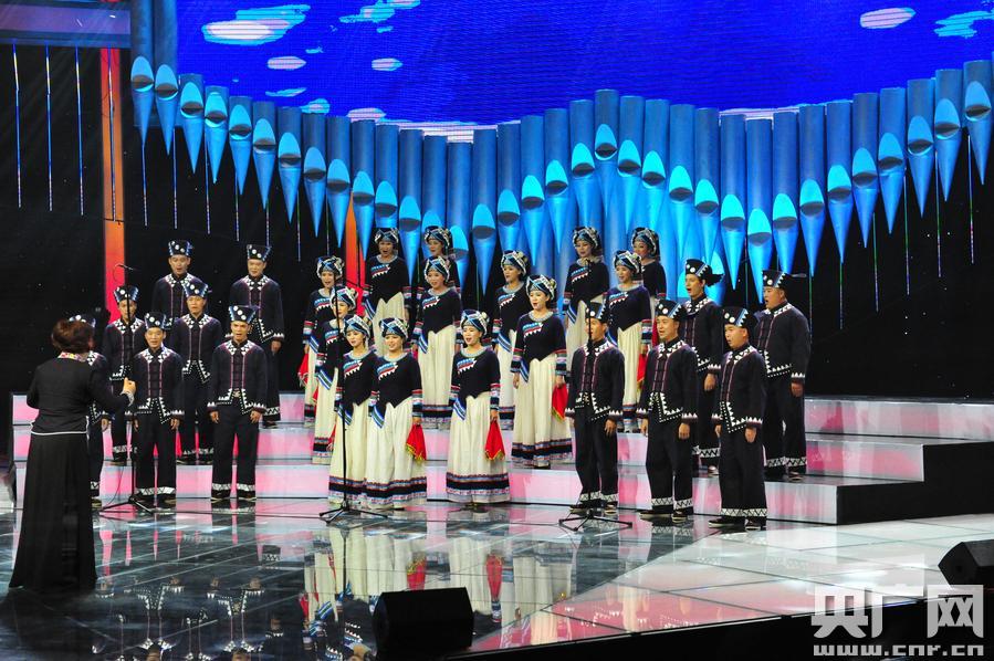 文山壯族坡芽合唱團(tuán)奪中央電視臺(tái)《歌聲與微笑——合唱先鋒》總冠軍,圖為比賽現(xiàn)場。