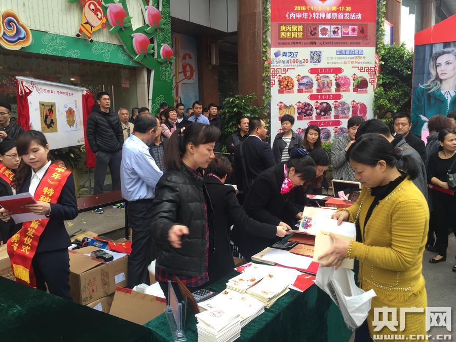 央廣網(wǎng)廈門1月5日消息(記者 馬寧)2016年是農(nóng)歷丙申猴年,喜歡集郵的朋友一定知道猴年對于集郵界的特殊意義,36年前,我國工藝美術(shù)大師黃永玉創(chuàng)造了生肖郵票的一個(gè)奇跡,當(dāng)時(shí)票面僅為8分錢一枚的金猴郵票在幾十年間價(jià)格不斷上漲,目前已經(jīng)漲到大約1萬2千元左右。時(shí)隔3個(gè)輪回,今年已經(jīng)92歲高齡的黃永玉再次執(zhí)筆,為即將到來的丙申猴年再度設(shè)計(jì)了一套猴票,今天這套猴票在全國各大城市發(fā)布,廈門郵政今天總共在市區(qū)四個(gè)點(diǎn)設(shè)立了發(fā)售現(xiàn)場,方便市民購買。