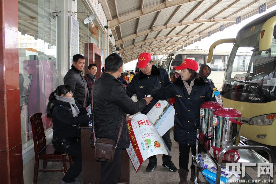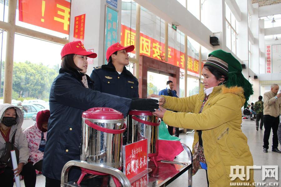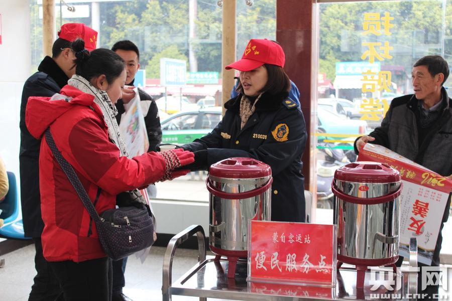 紅河州運(yùn)管局人員為旅客遞上開水并贈(zèng)送年歷