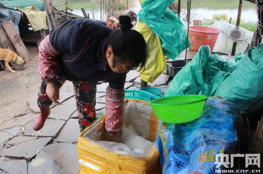 記者在欽州市欽南區(qū)康熙嶺鎮(zhèn)白雞村采訪時也看到,部分養(yǎng)殖戶拉來了大量冰袋,正將凍死的羅非魚進行冰凍處理。一名下鄉(xiāng)統(tǒng)計災情的欽南區(qū)干部看著被凍死的羅非魚,便買了幾條!昂鼙阋,先買回去,能吃就吃,不能吃再丟掉!