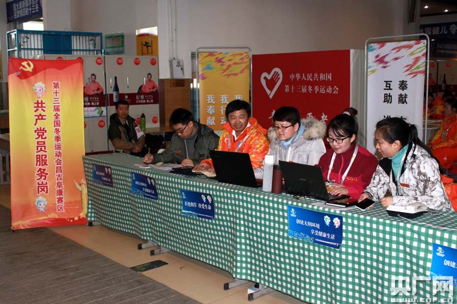 央廣網(wǎng)阜康1月30日消息(記者張雷 阜康臺(tái)記者王新剛 郭剛)在第十三屆全國(guó)冬季運(yùn)動(dòng)會(huì)新疆阜康賽區(qū)天山天池國(guó)際滑雪場(chǎng),人們隨處都能見到胸前佩戴共產(chǎn)黨員“先鋒崗”標(biāo)示的500多名黨員在為“十三冬”服務(wù)忙碌的身影。