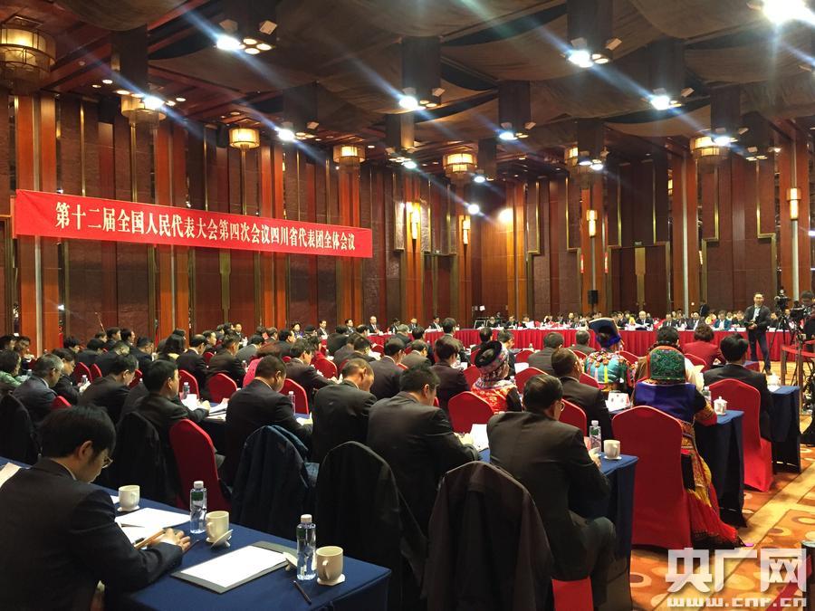 央廣網(wǎng)北京3月8日消息(記者韓民權(quán))8日上午,第十二屆全國(guó)人民代表大會(huì)第四次會(huì)議四川省代表團(tuán)全體會(huì)議在北京國(guó)際飯店舉行,繼續(xù)審議政府工作報(bào)告,同時(shí)審查計(jì)劃報(bào)告、預(yù)算報(bào)告。會(huì)議向媒體開放,代表們現(xiàn)場(chǎng)回答了國(guó)內(nèi)外記者的提問。
