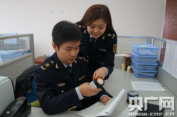 天津檢驗檢疫局北疆辦事處工作人員對進口蜂蜜進行標(biāo)簽審核