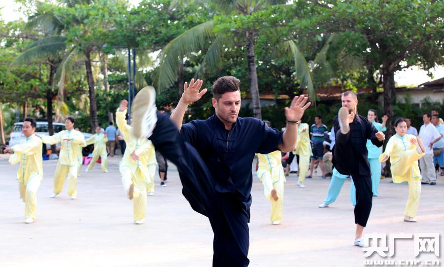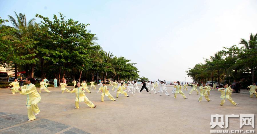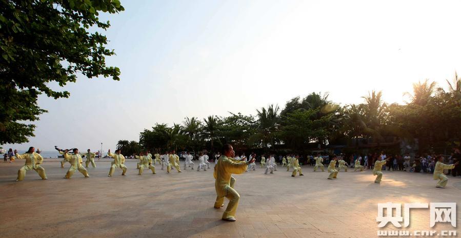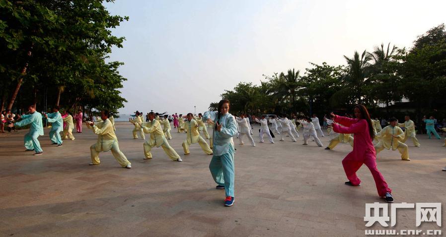 央廣網(wǎng)三亞3月31日消息(記者 吳媚苗 通訊員 陳文武)3月30日,由三亞南山景區(qū)發(fā)起的“共享太極 文明旅游”太極拳“快閃”秀在三亞大東海廣場舉行,百名中外太極拳愛好者集體演練“快閃”太極拳,弘揚太極拳文化,展現(xiàn)太極拳的獨特魅力,并向游客倡導(dǎo)文明旅游。