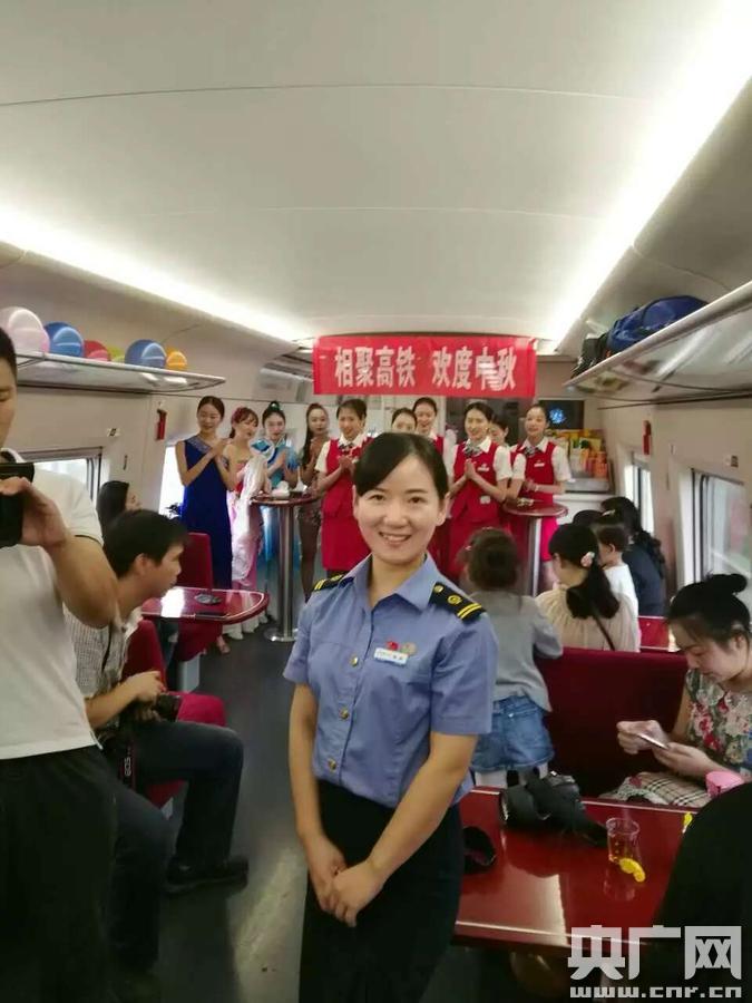 央廣網(wǎng)武漢9月15日消息(記者張毛清 通訊員劉衛(wèi)兵)今天(15日)是傳統(tǒng)節(jié)日中秋節(jié)。當(dāng)歸心似箭、回家團(tuán)聚的人們登上由武漢開(kāi)往深圳北的G77次列車時(shí),沒(méi)有料到會(huì)趕上武漢客運(yùn)段的乘務(wù)員們精心準(zhǔn)備的一場(chǎng)別樣中秋聯(lián)歡會(huì)。