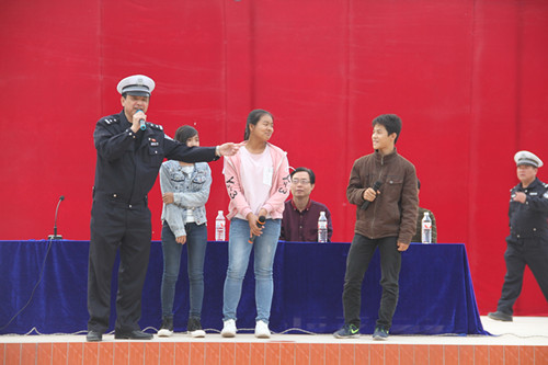 在講座過程中,桂平交警根據木根初中地處玉桂二級公路邊、路況復雜的現狀,深刻闡述提高交通安全防范意識的重要性,以近期本市某鎮(zhèn)初中三名學生的交通違法行為導致交通事故而身亡的慘痛案例為警示教訓,告誡廣大青少年學生要嚴守交通法規(guī),增強交通安全意識,努力做到文明出行和安全出行。桂平交警具體講解了目前轄區(qū)的道路交通安全形勢,深入分析了發(fā)生交通事故的原因及危害,向廣大師生講解如何做到安全步行,提醒出行騎自行車以及乘車的注意事項。在講座過程中,桂平交警還對道路交通安全常識進行普及,以有獎問答的形式調動學生參與交通安全知識學習的積極性。(注:圖片由廣西桂平市公安局交警大隊提供)