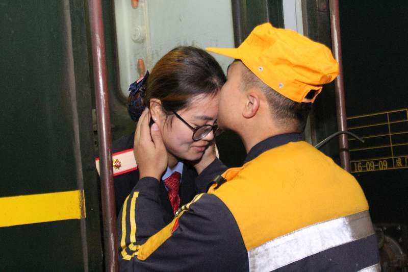 夫妻倆的為愛奔走,也引起了雙方領(lǐng)導(dǎo)的關(guān)注。2016年10月,曾誠(chéng)被調(diào)到K935/6次乘務(wù)班組任列車長(zhǎng),列車從襄陽(yáng)站始發(fā)經(jīng)焦柳線到達(dá)廣州東站,途中會(huì)停經(jīng)丈夫白江旭所在的枝江車站。因?yàn)槭锹毠ねㄇ谵k理站的緣故,列車在枝江站會(huì)有3分鐘的停點(diǎn),而這3分鐘也使夫妻倆8天里的短暫相聚變得更加彌足珍貴。為此,枝江車站也為白江旭調(diào)換了班組,讓他有時(shí)間接車。每每到了曾誠(chéng)出乘時(shí)間,白江旭都會(huì)穿戴的整整齊齊,在車站站臺(tái)耐心等待著妻子值乘列車的到來(lái)。列車進(jìn)站,車門打開,妻子第一個(gè)走下了列車,立崗觀察無(wú)異樣后,便一個(gè)健步扎進(jìn)了丈夫白江旭的懷里,與丈夫寒暄幾句,待到乘降結(jié)束,妻子依依不舍的登上了列車,兩人在汽笛聲中匆匆告別!叭昼姟背闪诵煽谧钐鹈鄣淖罾寺募s會(huì)。