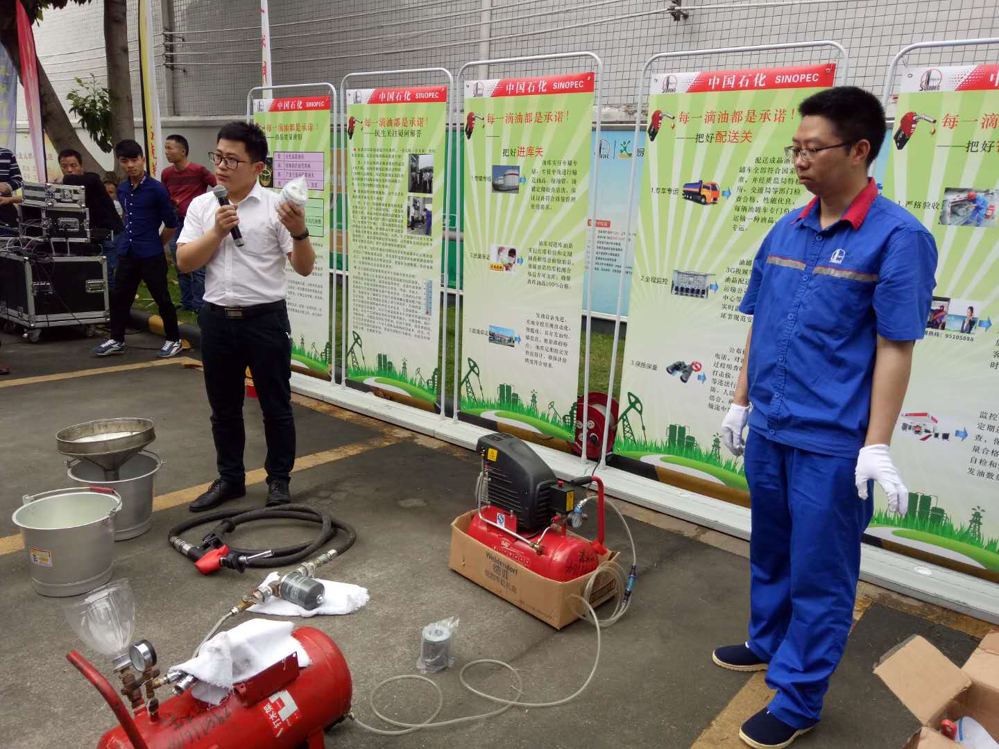 油里真的摻水了嗎?為解答這個(gè)問(wèn)題,主辦方專(zhuān)門(mén)在現(xiàn)場(chǎng)設(shè)了一臺(tái)模擬加油機(jī)。工作人員在汽油中摻入自來(lái)水后,無(wú)論將油槍開(kāi)到什么位置,都加不出油來(lái)。其后,工作人員又在油品中摻入碎沙石并攪成混合物,但油槍加出來(lái)的油一樣清澈透亮。據(jù)現(xiàn)場(chǎng)專(zhuān)家介紹,這是因?yàn)樗麄冊(cè)诩佑蜋C(jī)進(jìn)油管和流量計(jì)之間安裝了一個(gè)叫“除水濾芯”的裝置,對(duì)比傳統(tǒng)的普通濾芯,除水濾芯的過(guò)濾精度更高,容塵能力和耐壓能力都更強(qiáng),有效保證了油品的質(zhì)量,減少汽車(chē)發(fā)動(dòng)機(jī)的磨損,延長(zhǎng)車(chē)輛的使用壽命。