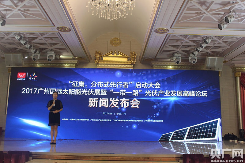 央廣網(wǎng)廣州6月17日消息(記者何偉奇)6月16日,“征集,分布式先行者”啟動(dòng)大會(huì)2017廣州國際太陽能光伏展暨“一帶一路”光伏產(chǎn)業(yè)發(fā)展高峰論壇新聞發(fā)布會(huì)在廣州舉行,中山大學(xué)太陽能研究院、廣東省太陽能協(xié)會(huì)、中國光伏應(yīng)用創(chuàng)新聯(lián)盟、廣東省光伏產(chǎn)業(yè)創(chuàng)新聯(lián)盟、廣東省太陽光伏能源系統(tǒng)標(biāo)準(zhǔn)化技術(shù)委員會(huì)、廣東鴻威國際會(huì)展集團(tuán)等200多家機(jī)構(gòu)負(fù)責(zé)人及眾多業(yè)內(nèi)大咖出席了本次發(fā)布會(huì)。
