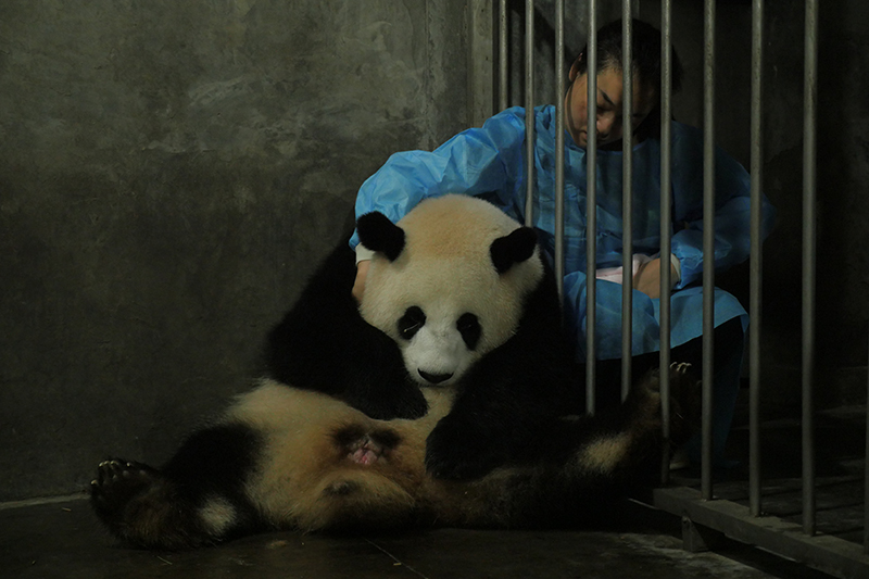據(jù)成都大熊貓繁育研究基地專家吳孔菊介紹,大熊貓“小丫頭”于2017年6月28日,開始出現(xiàn)減食反應(yīng),窩窩頭完全不吃,只吃蘋果;7月25日凌晨開始,“小丫頭”頻繁走動(dòng),舔外陰,且有“做窩”行為;7月26日00:45破水。