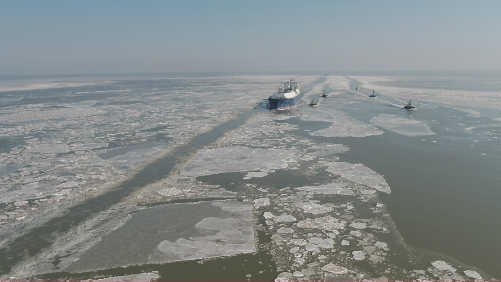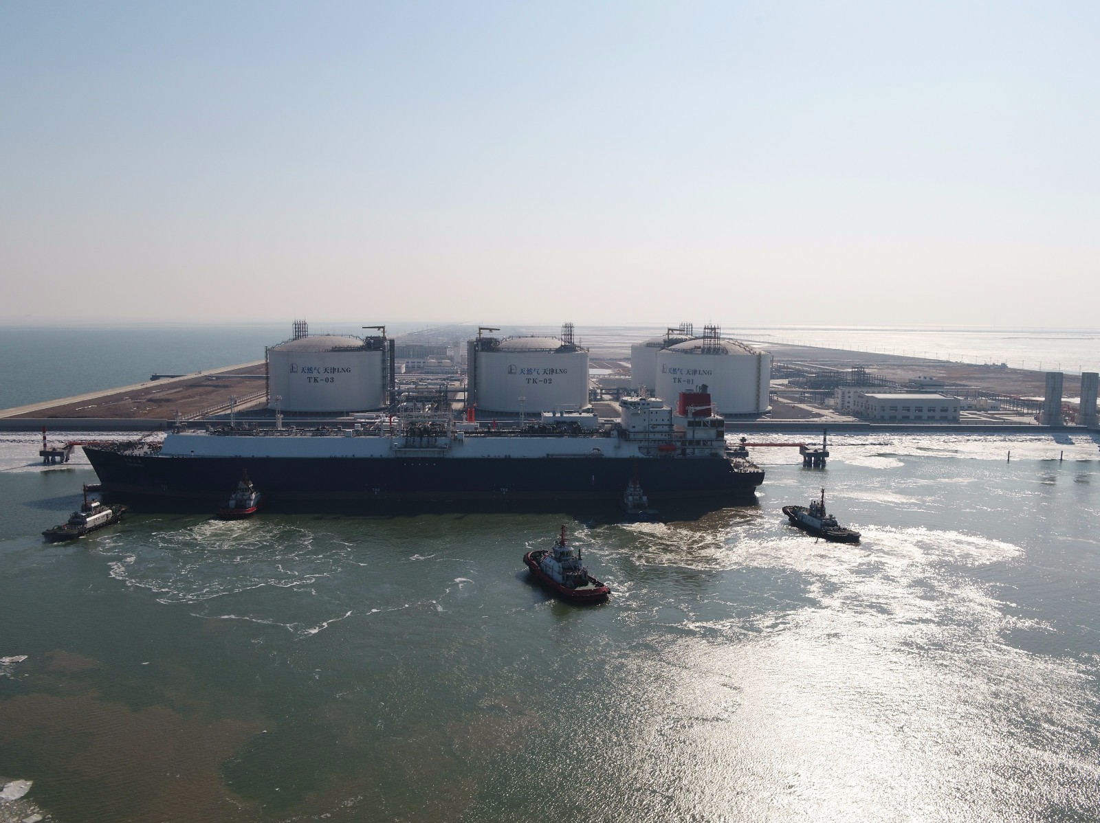 在天津海事船艇的護(hù)送下,載運(yùn)LNG(液化天然氣)的“中能北!陛喗裉煜挛纾2月6日)安全靠妥大港港區(qū)中石化天津LNG碼頭。這也是天津港大港港區(qū)通航后迎來的首艘LNG船舶。