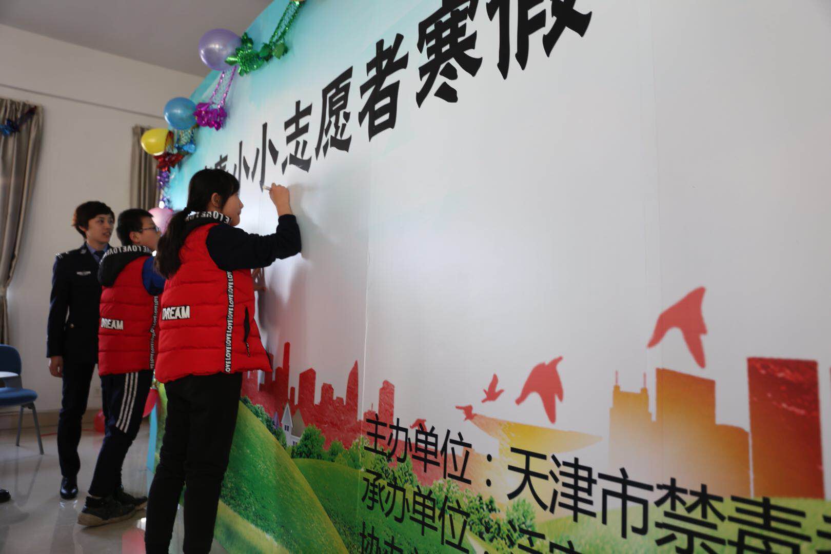 在天津市禁毒辦民警的帶動下,參與活動的同學(xué)們紛紛踴躍上臺簽名,從自身做起“珍愛生命 遠(yuǎn)離毒品”,爭當(dāng)禁毒小天使。