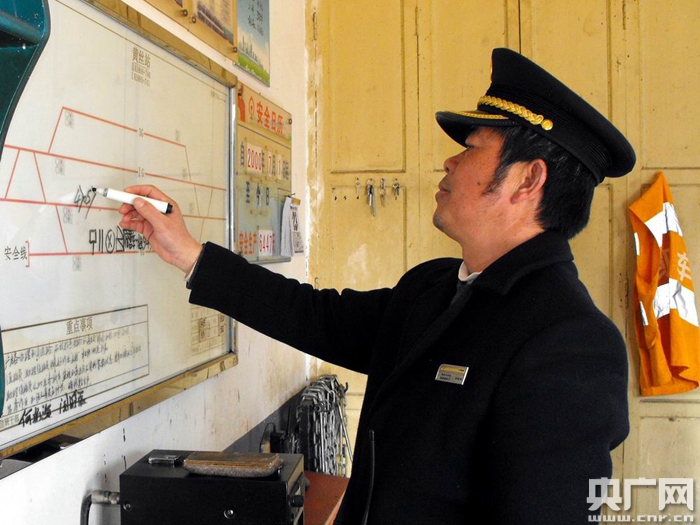 何光海說,“車站就是我們的家,一輩一輩黃絲小站鐵路人在小站上的堅(jiān)守,守來44年的春運(yùn)的安全,值!”。(央廣網(wǎng)發(fā) 姜澤鵬攝影)