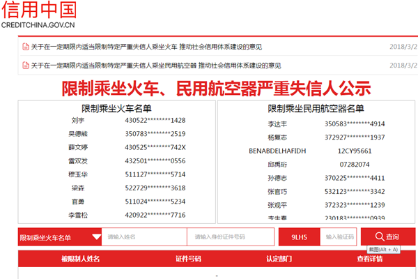 鐵路有關(guān)部門負(fù)責(zé)人介紹,2018年5月1日,由國家發(fā)展改革委等八部門聯(lián)合發(fā)布文件,明確在一定期限內(nèi)適當(dāng)限制特定嚴(yán)重失信人乘坐火車,推動社會信用體系建設(shè)。近期,中國鐵路成都局集團(tuán)有限公司按照限制鐵路旅客運(yùn)輸領(lǐng)域嚴(yán)重失信人購買車票的管理辦法,對嚴(yán)重失信行為人信息進(jìn)行了認(rèn)真核查,當(dāng)月最終被認(rèn)定有嚴(yán)重失信行為的人員共12人。