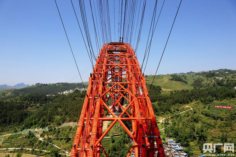作為我國典型的高山峽谷大跨度鋼管拱橋和世界同類型橋梁之最,大小井特大橋結(jié)構(gòu)、技術(shù)復(fù)雜,質(zhì)量要求高。貴州橋梁建設(shè)集團有限責(zé)任公司總工程師張勝林介紹,施工單位克服了地形陡峭、大體積混凝土澆筑、毫米級焊接拼裝精度控制等難題。大橋主拱圈采用無支架纜索吊裝施工工藝。“所謂上承式就是行車道板在拱的上面,在貴州高速公路跨越U型河谷拱橋就是首選的橋型。拱橋?qū)嵤┕に嚫鼜?fù)雜,它的好處是總體的橋長會短一些,如果要修建一個斜拉橋,總體的橋長就會很長,橋越長造價就越高!