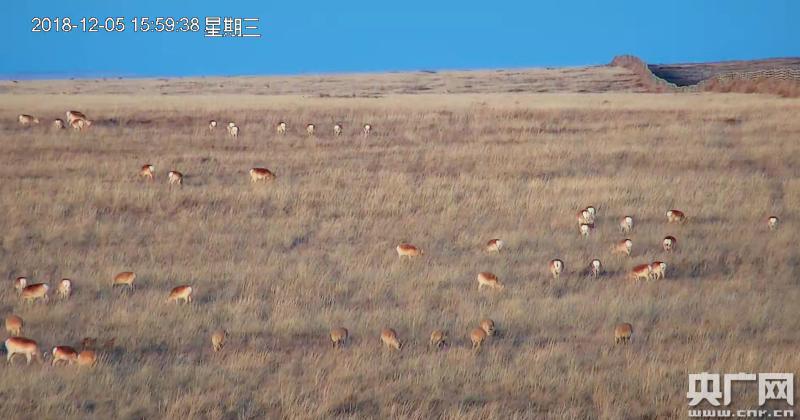 千只野生黃羊在中蒙邊境地區(qū)遷徙覓食。監(jiān)控畫面截圖