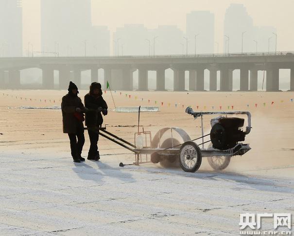 央廣網(wǎng)哈爾濱12月12日消息(記者毛更偉 楊沼畔 喬仁慧 遲嵩 馮志遠(yuǎn) 見習(xí)記者唐國榮 瞿文斌)歲末年關(guān),冰雪旅游的市場拉開大幕。目前,黑龍江省已經(jīng)開始了取冰制冰雕的準(zhǔn)備工作。松花江上取冰正當(dāng)時,取冰人正在為以冰雪大世界為代表的黑龍江各大冰雪景點輸送冰雪原料。