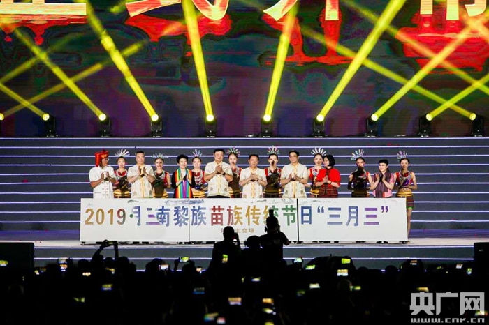 央廣網(wǎng)陵水4月8日消息(記者朱永)4月7日晚,2019年海南黎族苗族傳統(tǒng)節(jié)日“三月三”主會場開幕式暨主題文藝晚會在陵水黎族自治縣海航體育場盛大啟幕。