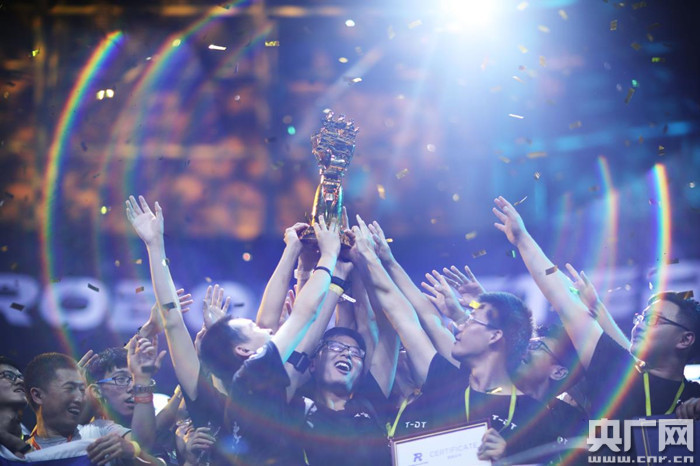 在季軍爭奪戰(zhàn)中,電子科技大學(xué)在被大連交通大學(xué)先勝兩局的情況下,連扳三局獲得最終勝利,成為本屆大賽的季軍。在決勝局中,電子科技大學(xué)打了一場漂亮的“閃電戰(zhàn)”,2分鐘內(nèi)擊殺了大連交通大學(xué)的多個機(jī)器人,并打掉對方基地全部血量,獲得勝利。