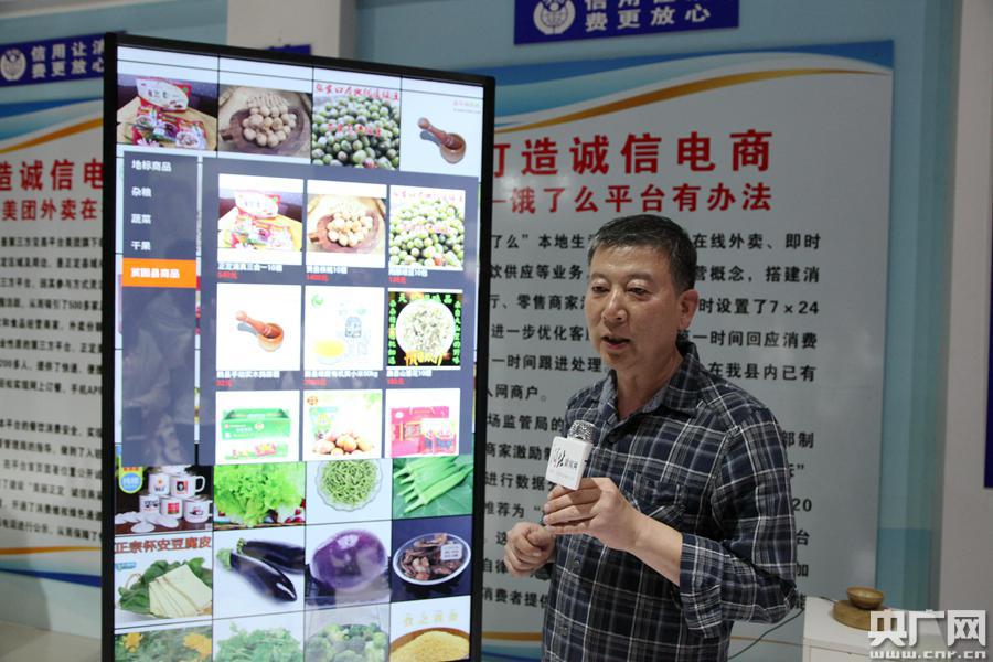 正定縣農(nóng)村電子商務(wù)公共服務(wù)中心副主任王庚介紹情況(央廣網(wǎng)記者 舒隆煥 攝)