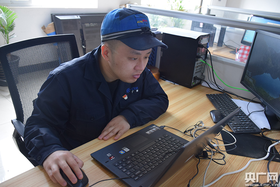徐海洋正在編輯旅客服務(wù)信息系統(tǒng)數(shù)據(jù)(央廣網(wǎng)發(fā) 萬新 攝)