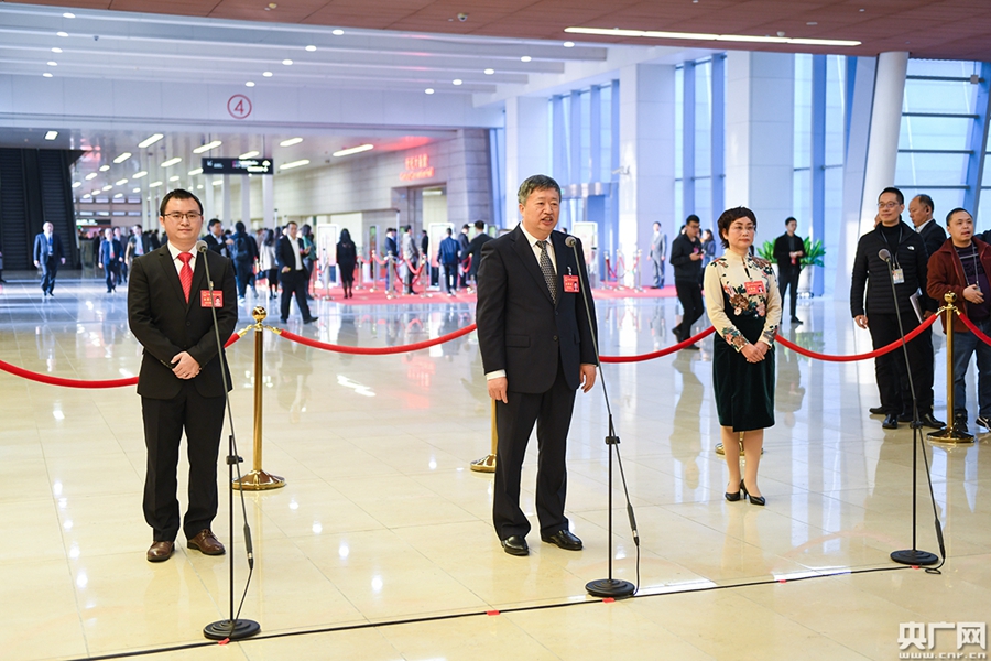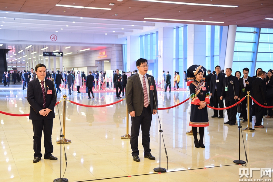 廣東省十三屆人大三次會議首場“代表通道”14日上午開啟。(央廣網(wǎng)記者官文清 攝)