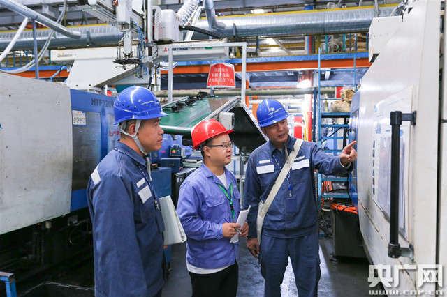 南方電網(wǎng)廣東中山供電局工作人員到美的環(huán)境電器有限公司了解生產(chǎn)情況。(央廣網(wǎng)發(fā) 馬婷 攝)