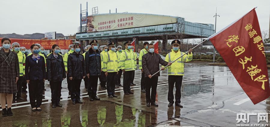 2月4日中午,在連綿冷雨中的粵北省界,開(kāi)陽(yáng)高速路政大隊(duì)副大隊(duì)長(zhǎng)許佳生接過(guò)鮮紅的“疫情防控黨團(tuán)支援隊(duì)”旗幟,在他身后的隊(duì)員們共同舉手宣誓:“聽(tīng)從指揮,積極行動(dòng),堅(jiān)決守好廣東北大門(mén)!打贏疫情防控阻擊戰(zhàn)!”他們是廣東省高速公路有限公司從各高速路段抽調(diào)派赴粵北增援防疫工作的第一批10名隊(duì)員,隨行而來(lái)的還有消毒酒精、手套、口罩等一批防疫物資。