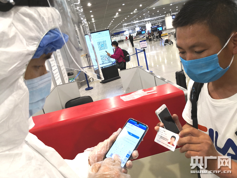 工作人員正在對(duì)旅客進(jìn)行查驗(yàn)(央廣網(wǎng)發(fā) 通訊員供圖)