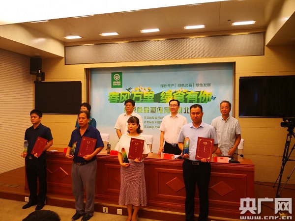 為4家全國“最美綠色食品企業(yè)”頒發(fā)獎牌和榮譽(yù)證書(央廣網(wǎng)記者 孟曉光 攝)