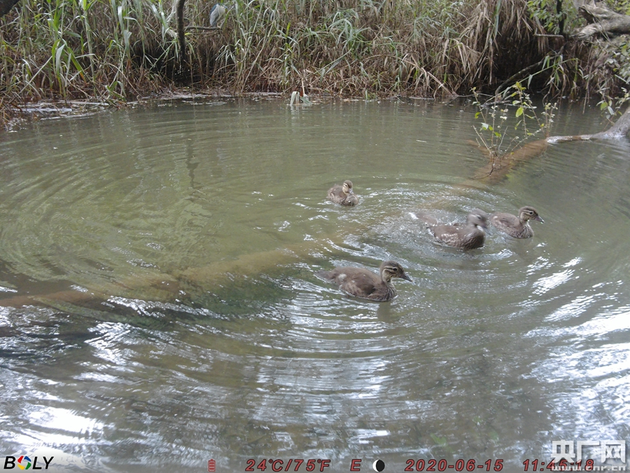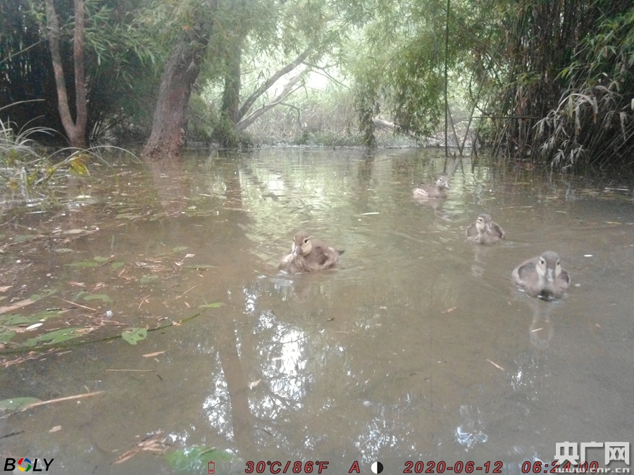 據(jù)悉,今年3月,一對(duì)進(jìn)入繁殖期的野生鴛鴦出現(xiàn)在車(chē)八嶺保護(hù)區(qū)。兩個(gè)月后,影像中的鴛鴦媽媽帶著三只可愛(ài)的毛茸茸的小寶寶,出門(mén)玩耍,這一切均被保護(hù)區(qū)的紅外相機(jī)記錄下來(lái)。此后,三只可愛(ài)的“小毛球”一直跟著“媽媽”活動(dòng),學(xué)習(xí)游泳、覓食、梳理毛發(fā)等等。據(jù)保護(hù)區(qū)工作人員介紹,根據(jù)記錄,大部分情況下三只雛鳥(niǎo)和親鳥(niǎo)一起活動(dòng),主要行為有跟隨、游泳、覓食、梳理等,活動(dòng)時(shí)間最早記錄為清晨6時(shí),最晚持續(xù)到約19時(shí)。這對(duì)鴛鴦家庭的影像記錄一直持續(xù)到了6月底。這位工作人員告訴記者,這應(yīng)該是由于三只小雛鳥(niǎo)已經(jīng)從萌噠噠的“小毛球”慢慢成長(zhǎng)為“棱角分明”的“小大人”的樣子。