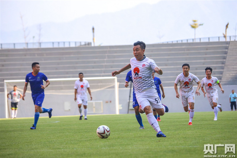 彭偉國等廣東足球名宿組成廣州歲月明星足球隊(duì)對陣四會市足球隊(duì)表演賽(央廣網(wǎng)發(fā) 通訊員梁亮 攝)
