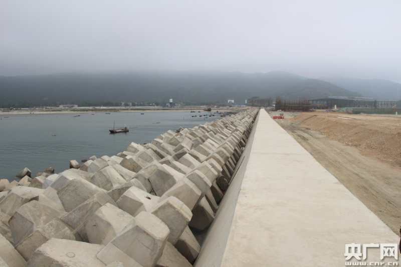 當(dāng)事企業(yè)在超出海域使用權(quán)證書批準(zhǔn)用海范圍的情況下擅自圍海、填海作業(yè)(央廣網(wǎng)發(fā) 廣東海警局供圖)