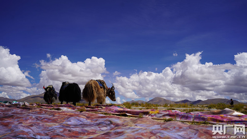央廣網(wǎng)廣州9月20日消息(記者何偉奇)83件巨幅畫作,由57頭牦牛馱負著,沿著山坡曲線,在陽光、藍天、白云、雪山、曠野和風共同創(chuàng)構的場域中,搭設成一道寄予著人們美好祈愿的彩虹,面對珠穆朗瑪山峰徐徐展開。這是華南理工大學建筑學院美術教研室主任、視覺藝術實驗室主任王義明帶領著廣東藝術團隊9月18-19日在西藏日喀則崗嘎鎮(zhèn)展開的人與自然合力創(chuàng)作。