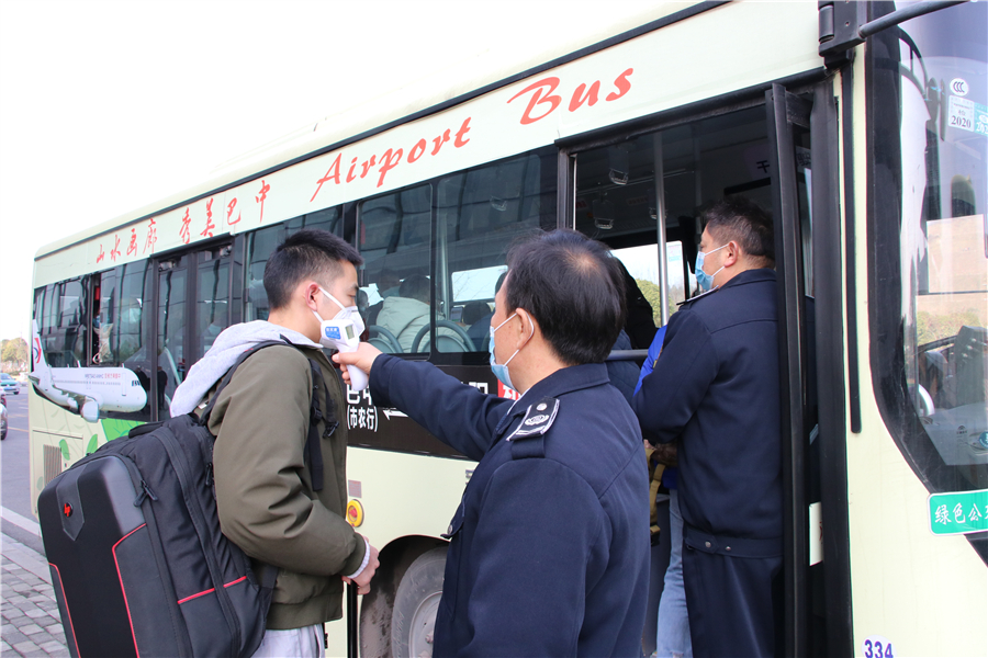 乘坐擺渡車時進行體溫檢測(央廣網發(fā) 四川交投供圖)