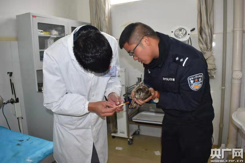 經(jīng)民警核實,這只“野鳥”是一種叫雕鸮的野生鳥類,屬國家二級保護(hù)動物,它的爪子受了傷。隨后,民警將受傷的雕鸮送到鄉(xiāng)衛(wèi)生院包扎傷口。