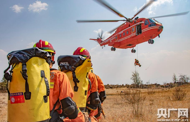 云南消防和昆明航空救援力量聯(lián)合開展航空投送實戰(zhàn)演練(央廣網(wǎng)發(fā) 通訊員供圖)