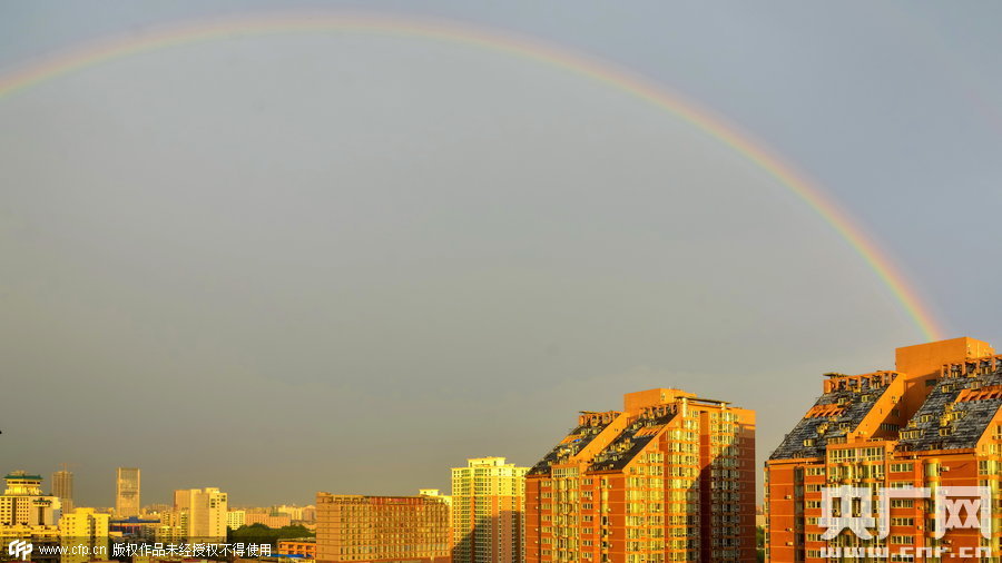 2015年6月6日,北京,當日是二十四節(jié)氣中的第9個節(jié)氣——芒種,一場雷陣雨后出現(xiàn)彩虹。