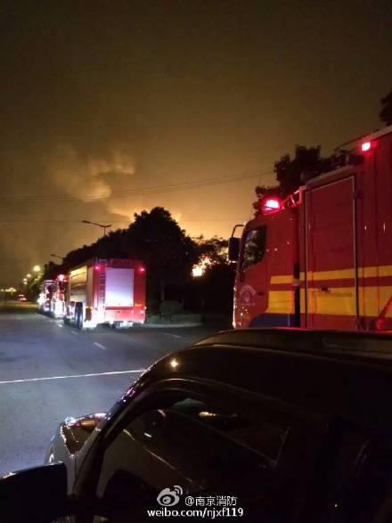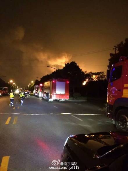 據(jù)南京消防官方微博消息:目前明火燃燒高度約15米,經(jīng)確認(rèn)現(xiàn)場為環(huán)氧乙烷裝置發(fā)生爆炸起火,并引燃周邊三個醇類儲罐(共6個,目前3個未起火),每個罐體容量約1000立方米,目前火勢呈穩(wěn)定燃燒狀態(tài),移動炮等固定消防設(shè)施正在出水降溫,阻止蔓延。