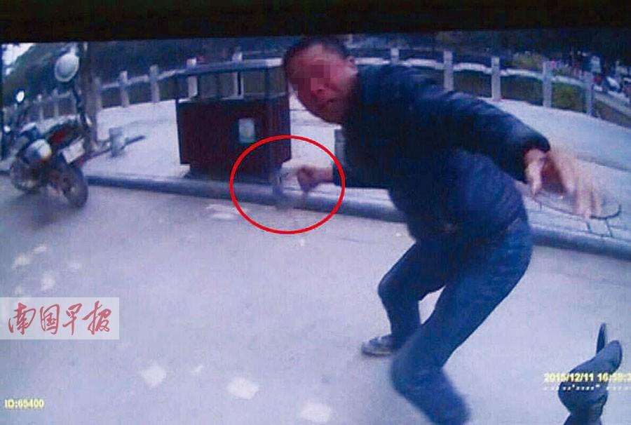 12月14日,南國(guó)早報(bào)記者在調(diào)取的監(jiān)控視頻中看到,小湯做出攔停男子的手勢(shì)后,男子并未減速,打算快速?gòu)?qiáng)行通過(guò),與小湯發(fā)生碰撞后摔倒在地。接下來(lái),男子很快爬起來(lái),撿起跌落在地上的U型鎖,朝小湯的頭部猛地砸了過(guò)去,還連擊了好幾下。小湯沒(méi)有還手,本能地做出了防御動(dòng)作,頭部、肩部多處被砸傷。