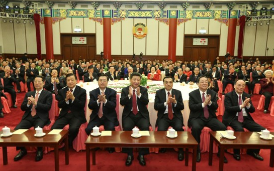 12月31日,全國政協(xié)在北京舉行新年茶話會。黨和國家領導人習近平、李克強、張德江、俞正聲、劉云山、王岐山、張高麗出席茶話會并觀看演出。新華社記者 龐興雷 攝