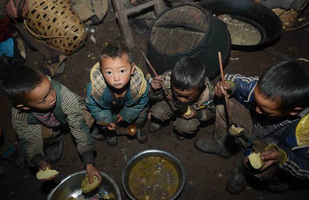 新華網(wǎng)北京2月25日電(方瑋晴) 2016年春節(jié)前夕,在家家戶戶過大年的喜慶氣氛中,一張大眼睛男孩曲比阿撒的照片卻牽動(dòng)著無數(shù)網(wǎng)友的心。照片中,幾位年僅4-5歲的小朋友圍坐在一起吃飯,沒有桌椅板凳,沒有碗和筷子,有的只有一口鍋和幾個(gè)勺子。