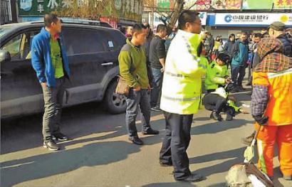 被拖行的協(xié)警倒在地上,表情痛苦,120急救車趕到后,將他送到附近的吉林市人民醫(yī)院救治。