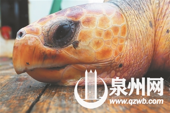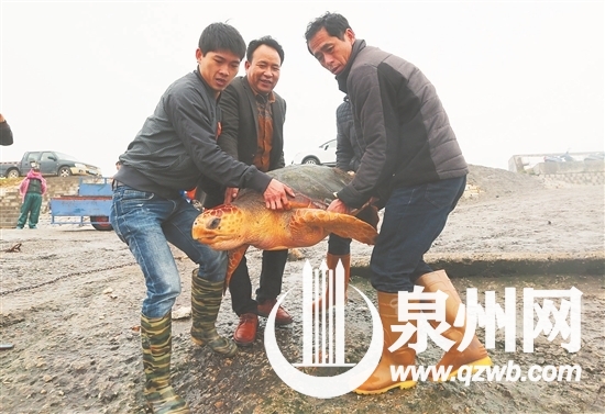 隨后,李阿尾和惠安縣海洋與漁業(yè)局取得聯(lián)系。經(jīng)過辨認(rèn),這只海龜為“太平洋麗龜”,是國(guó)家二級(jí)水生野生保護(hù)動(dòng)物。按照漁民的說法,海龜“一年長(zhǎng)一斤”,135斤重,年紀(jì)估計(jì)得有上百歲!坝徐`性!”李阿尾的妻子說,有人聽說他們捕到大海龜,出幾萬元想買回去放到寺廟里供養(yǎng),也有人出高價(jià)想買回去宰殺。不過,李阿尾和同伴決定將大海龜放生。