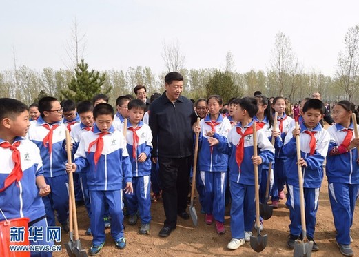 中共中央總書(shū)記、國(guó)家主席、中央軍委主席習(xí)近平5日上午在參加首都義務(wù)植樹(shù)活動(dòng)時(shí)強(qiáng)調(diào),中華民族偉大復(fù)興要靠全體中華兒女共同奮斗!笆濉睍r(shí)期既是全面建成小康社會(huì)的決勝階段,也是生態(tài)文明建設(shè)的重要時(shí)期。發(fā)展林業(yè)是全面建成小康社會(huì)的重要內(nèi)容,是生態(tài)文明建設(shè)的重要舉措。各級(jí)領(lǐng)導(dǎo)干部要帶頭參加義務(wù)植樹(shù),身體力行在全社會(huì)宣傳新發(fā)展理念,發(fā)揚(yáng)前人栽樹(shù)、后人乘涼精神,多種樹(shù)、種好樹(shù)、管好樹(shù),讓大地山川綠起來(lái),讓人民群眾生活環(huán)境美起來(lái)。